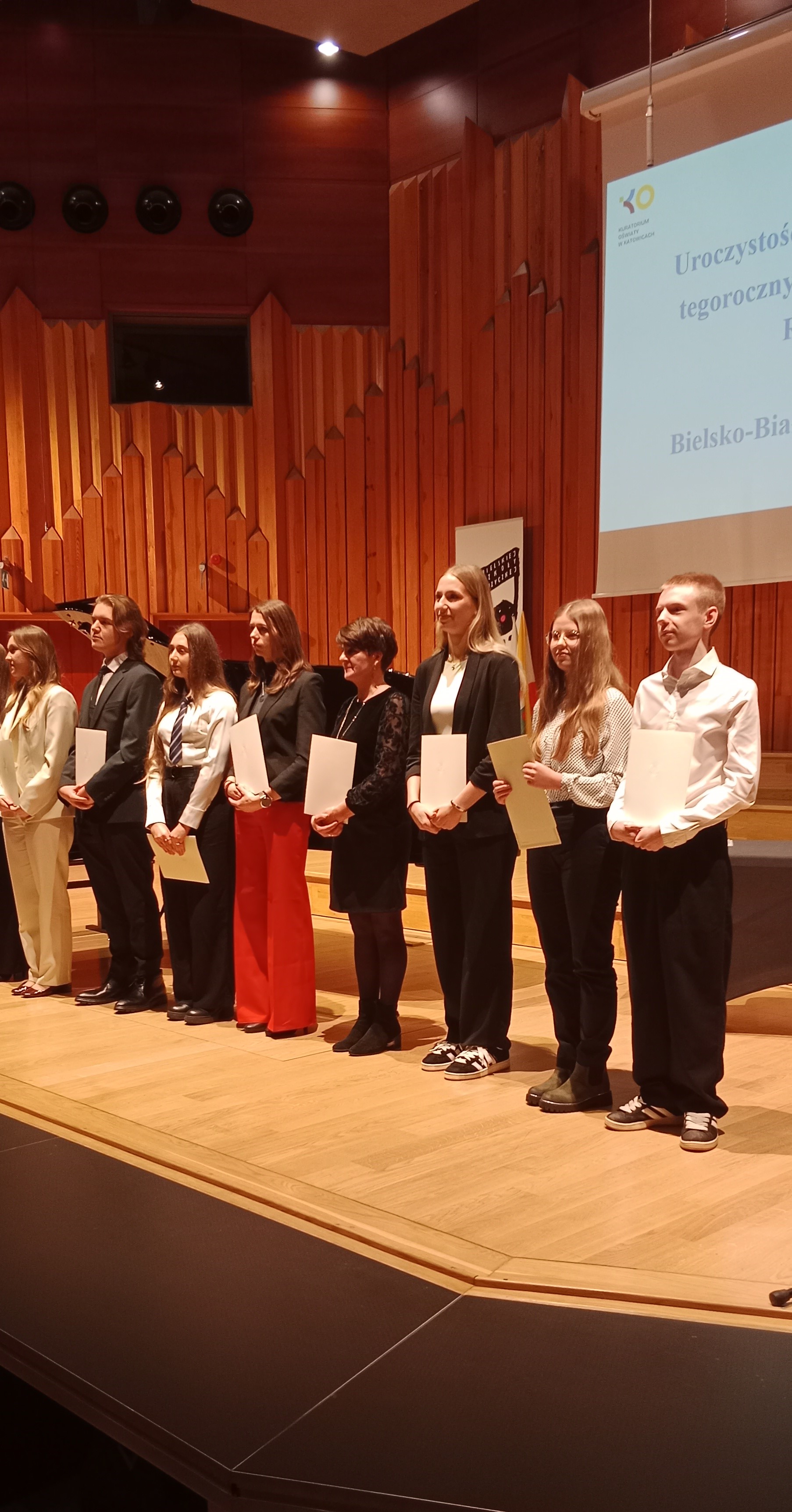 Mamy przyjemność poinformować, że Katarzyna Wysocka z klasy 2a otrzymała, jako najlepsza uczennica naszej szkoły, wyróżnienie Prezesa Rady Ministrów. Uroczyste wręczenie dyplomów tegorocznym stypendystom miało miejsce w czwartek 27 listopada w sali koncertowej Zespołu Państwowych Szkół Muzycznych im. Stanisława Moniuszki w Bielsku-Białej.