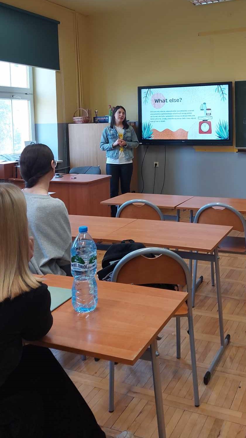 Dietetyk, pani Miriam Cieślar-Gajdzica, przeprowadziła bardzo ciekawy wykład na temat diety wspierającej pracę mózgu, połączony z warsztatami w klasach 3ab i 2a, w ramach lekcji biologii z p. Anetą Słowieną-Jurczok.