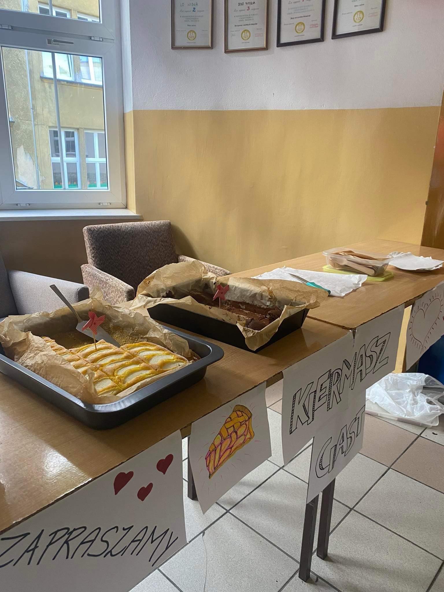 W ostatnim czasie w naszej szkole odbył się kiermasz ciast. Zebrana kwota została wpłacona na zbiórkę internetową naszego kolegi Pawła Jarosza z klasy 3ab. Akcję zainicjowała i koordynowała Kornelia Kaźmierczak. Specjalne podziękowania należą się Annie Cieślar, Annie Brzyskiej, Oliwii Zelek, Elżbiecie Podżorskiej za pomoc w organizacji kiermaszu. Dziękujemy także całej szkolnej społeczności za pomoc w przygotowaniu ciast i dostarczeniu ich do szkoły.