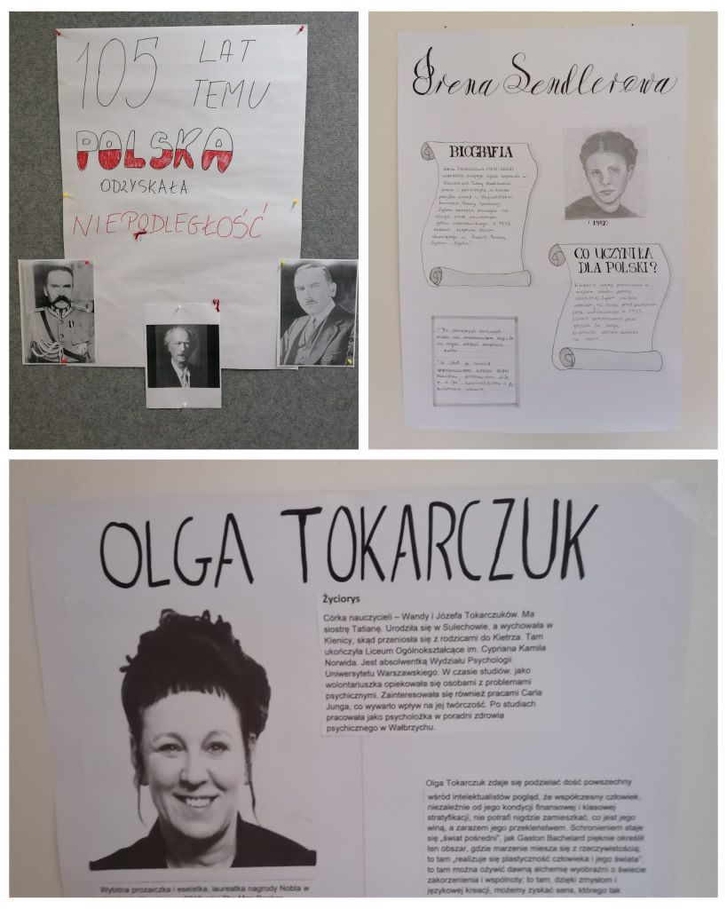 W ramach Tygodnia Patrona została także przeprowadzona akcja upamiętniająca odzyskanie niepodległości przez Polskę, czyli „Drzwi do historii”, która w tym roku objęła wybitnych Polaków/Polki, skupiających się w swej działalności na człowieku (człowiek jest motywem przewodnim realizowanego w naszej szkole projektu). Na drzwiach sal lekcyjnych uczniowie zawiesili prace, przedstawiające wybrane postaci.