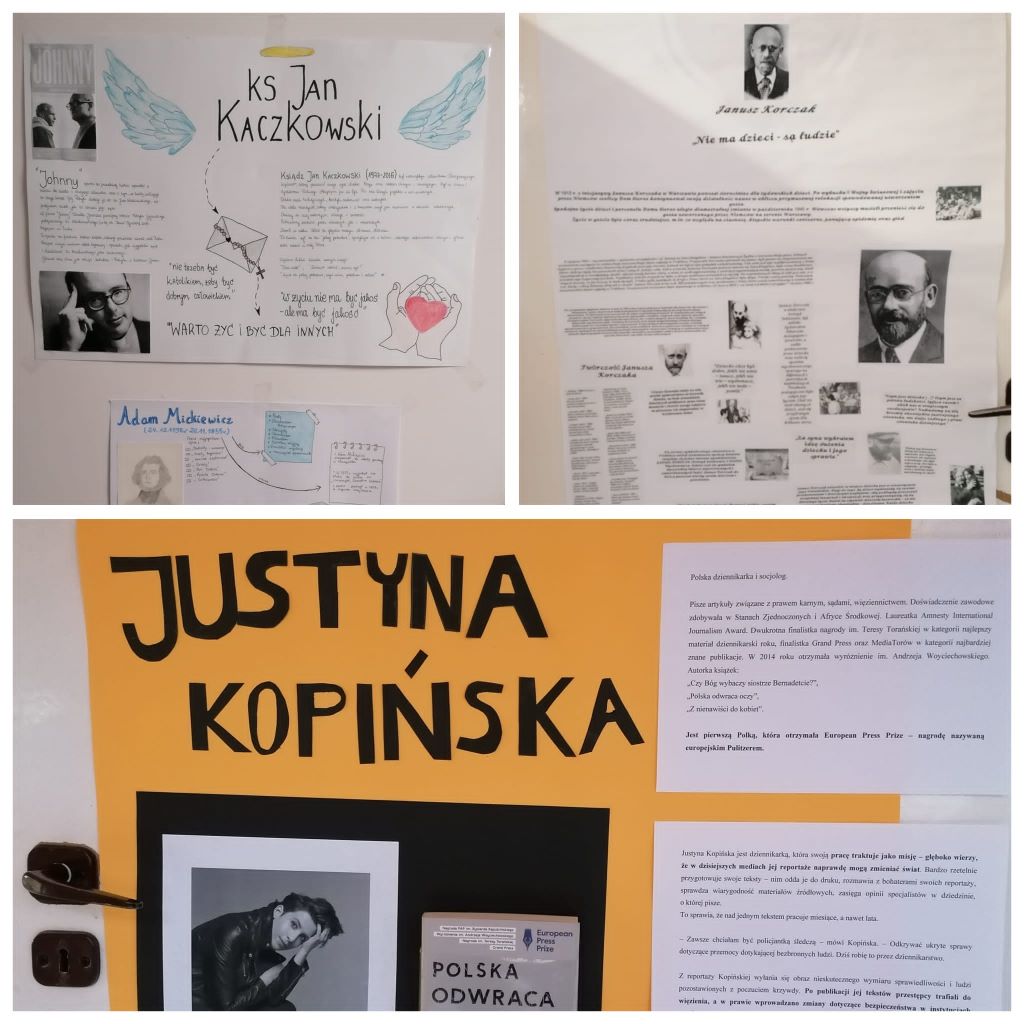 W szkolnym konkursie na najlepszy plakat zwyciężyły uczennice klasy 2b – Justyna Heczko i Magdalena Sztwiertnia za pracę dotyczącą Justyny Kopińskiej. Drugie miejsce zajęła praca Karoliny Patyk z 4ab, przedstawiająca postać Janusza Korczaka, a trzecie – praca Martyny Siedlok z 1b, o księdzu Janie Kaczkowskim. Nagrodzeni wezmą udział w wycieczce oraz otrzymają ocenę celującą z historii.