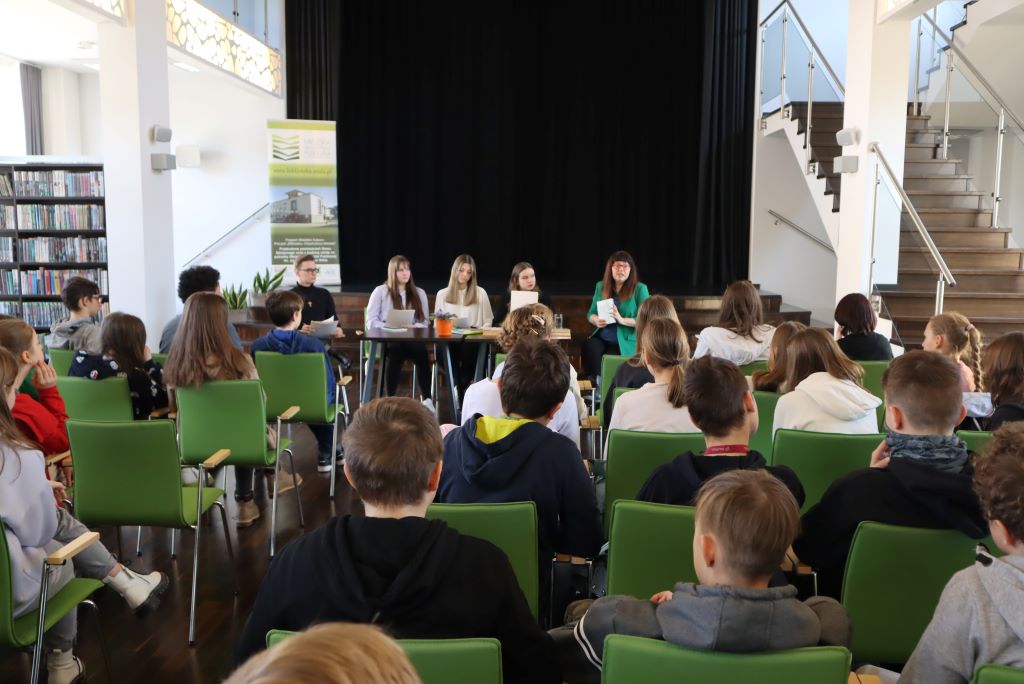 Dlaczego warto zostać pisarzem? Co inspiruje do pisania? To tylko kilka pytań, które mieli okazję zadać uczniowie klasy 2ab pani dr Joannie Godawie, autorce książki „Zielona inkluzja, czyli o związku człowieka z przyrodą. Outdoor education i leśnej bajce”. Anna Brzyska, Kornelia Łacek, Liliana Arsenicz i Bartosz Kielar poprowadzili spotkanie autorskie, organizowane przez Miejską Bibliotekę Publiczną im. J. Śniegonia. Była to okazja do rozmów nie tylko z wiślańską autorką bajek dla dzieci, ale również z młodzieżą klas siódmych na temat roli przyrody w naszym życiu. W roli dziennikarzy nasi uczniowie spisali się znakomicie!
