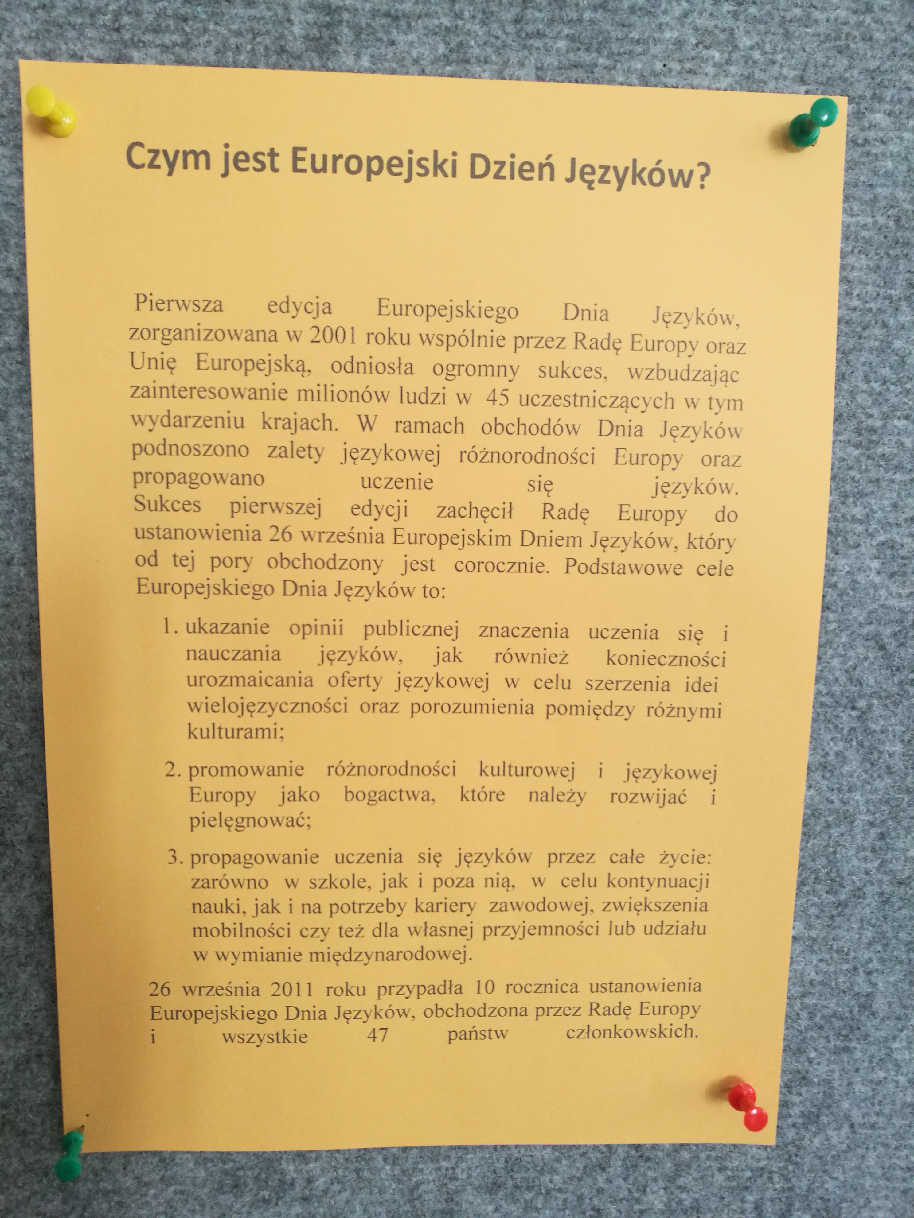 Już po raz kolejny w naszej szkole odbył się quiz językowy z okazji Europejskiego Dnia Języków Obcych, który obchodzony jest w Europie corocznie dnia 26 września. Uczniowie pracowali w grupach, sprawdzając swoją wiedzę na temat języków obcych. Cieszymy się, że nasi uczniowie wykazali się dużym zaangażowaniem i wiedzą.