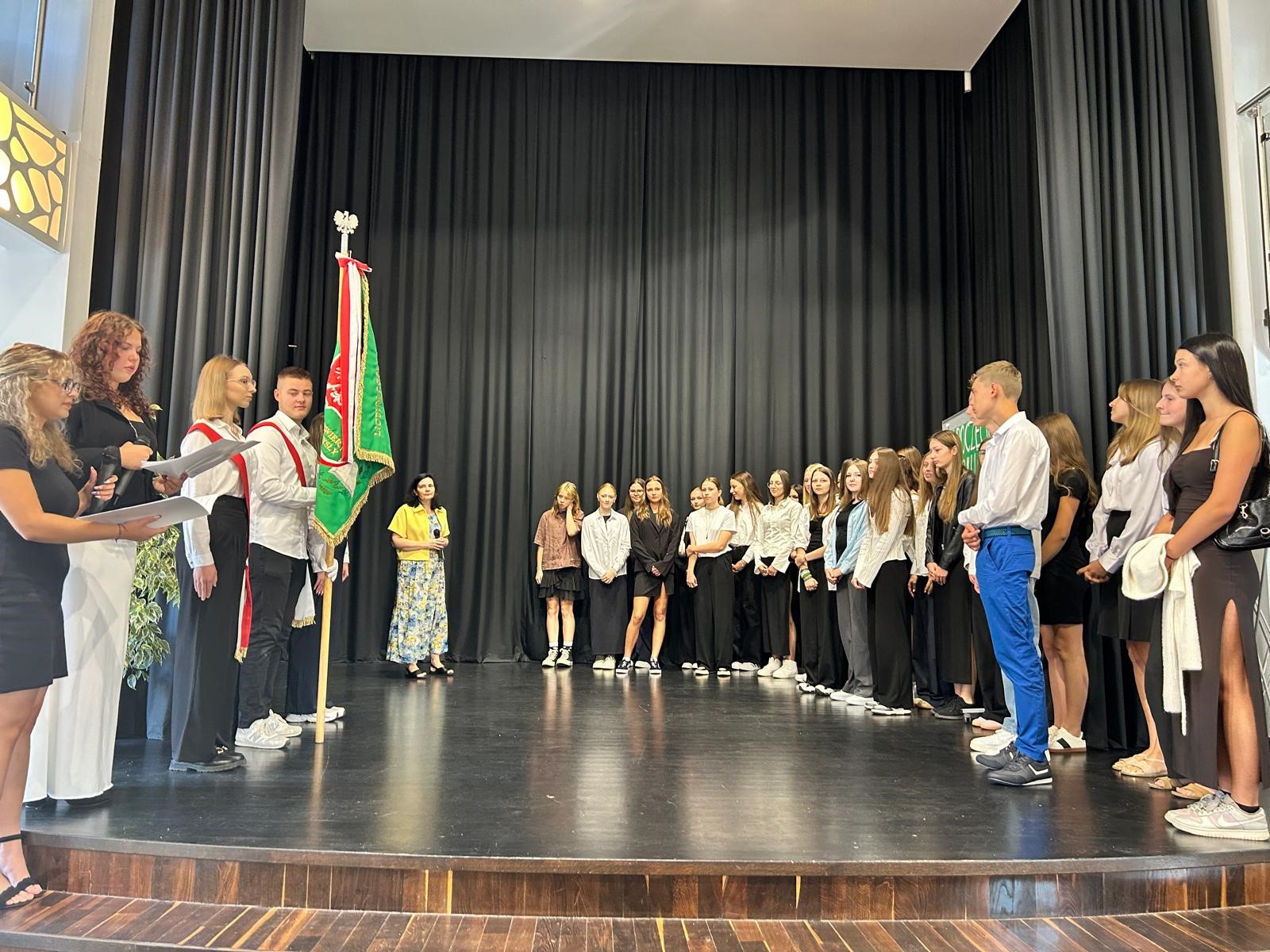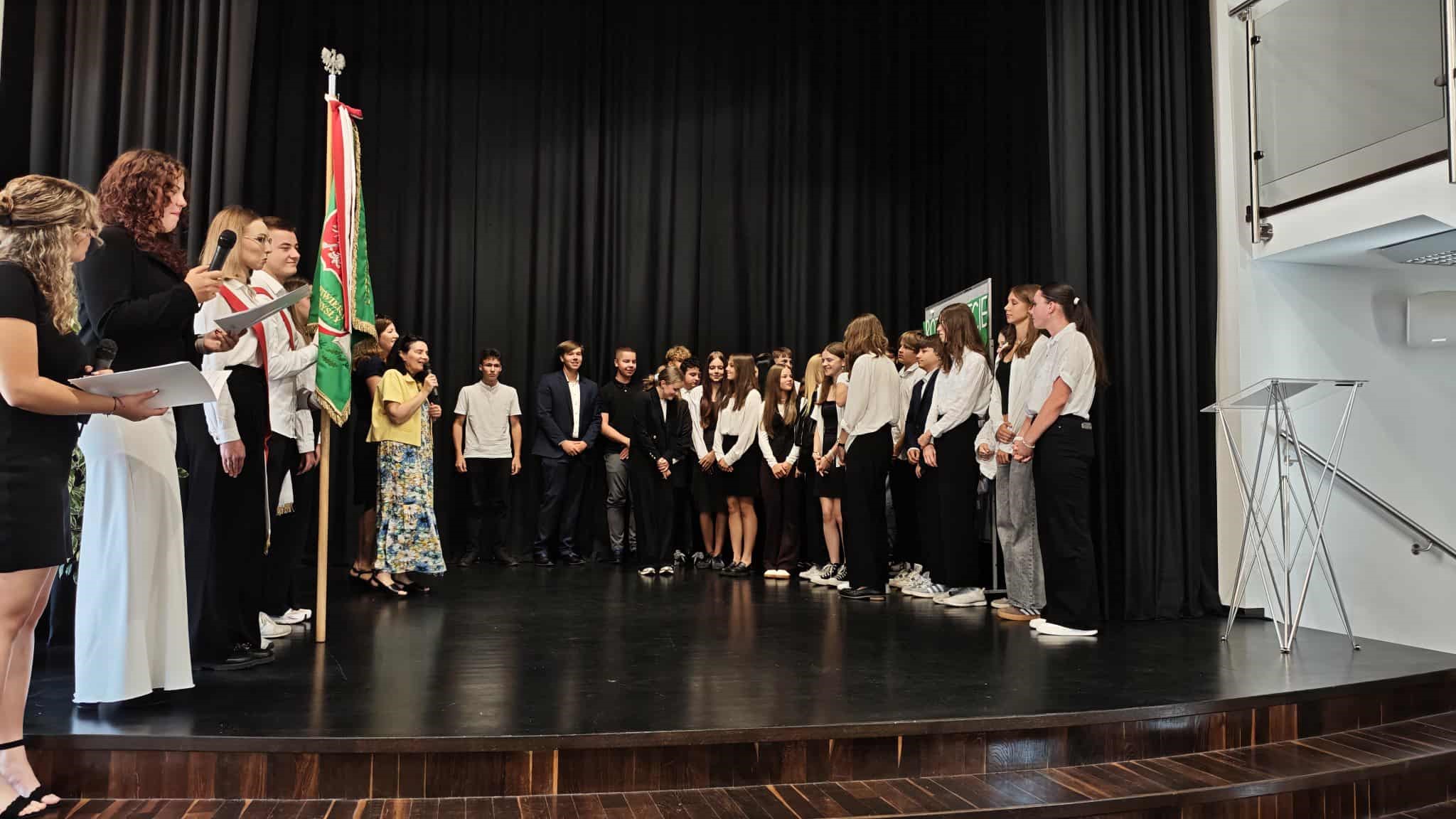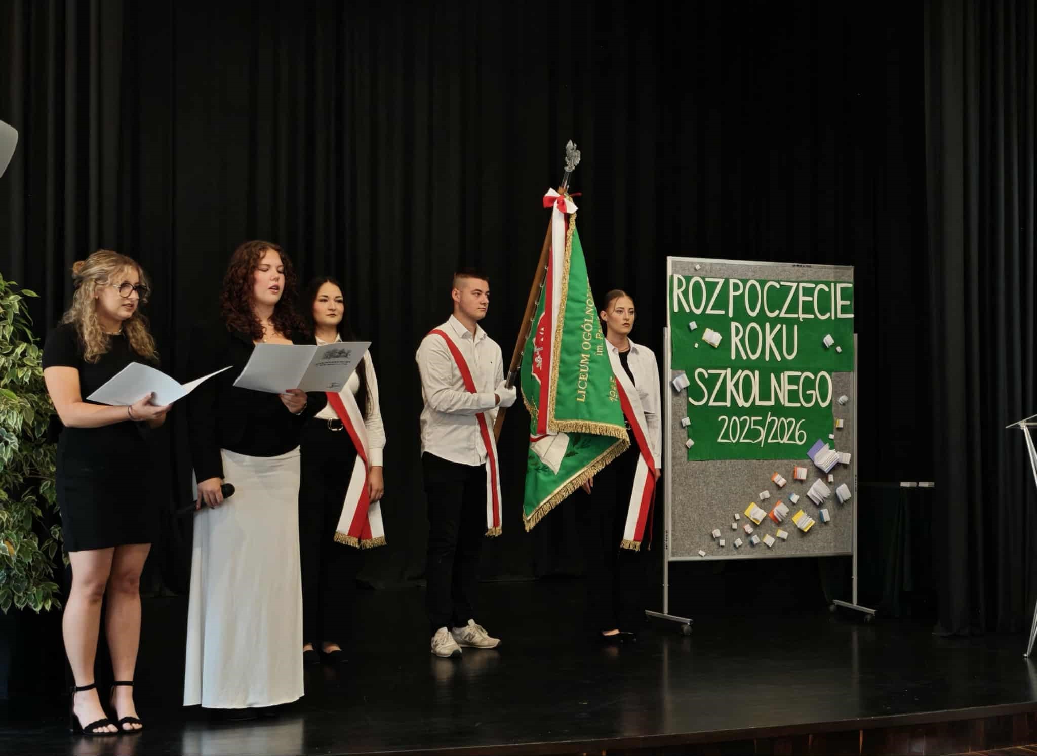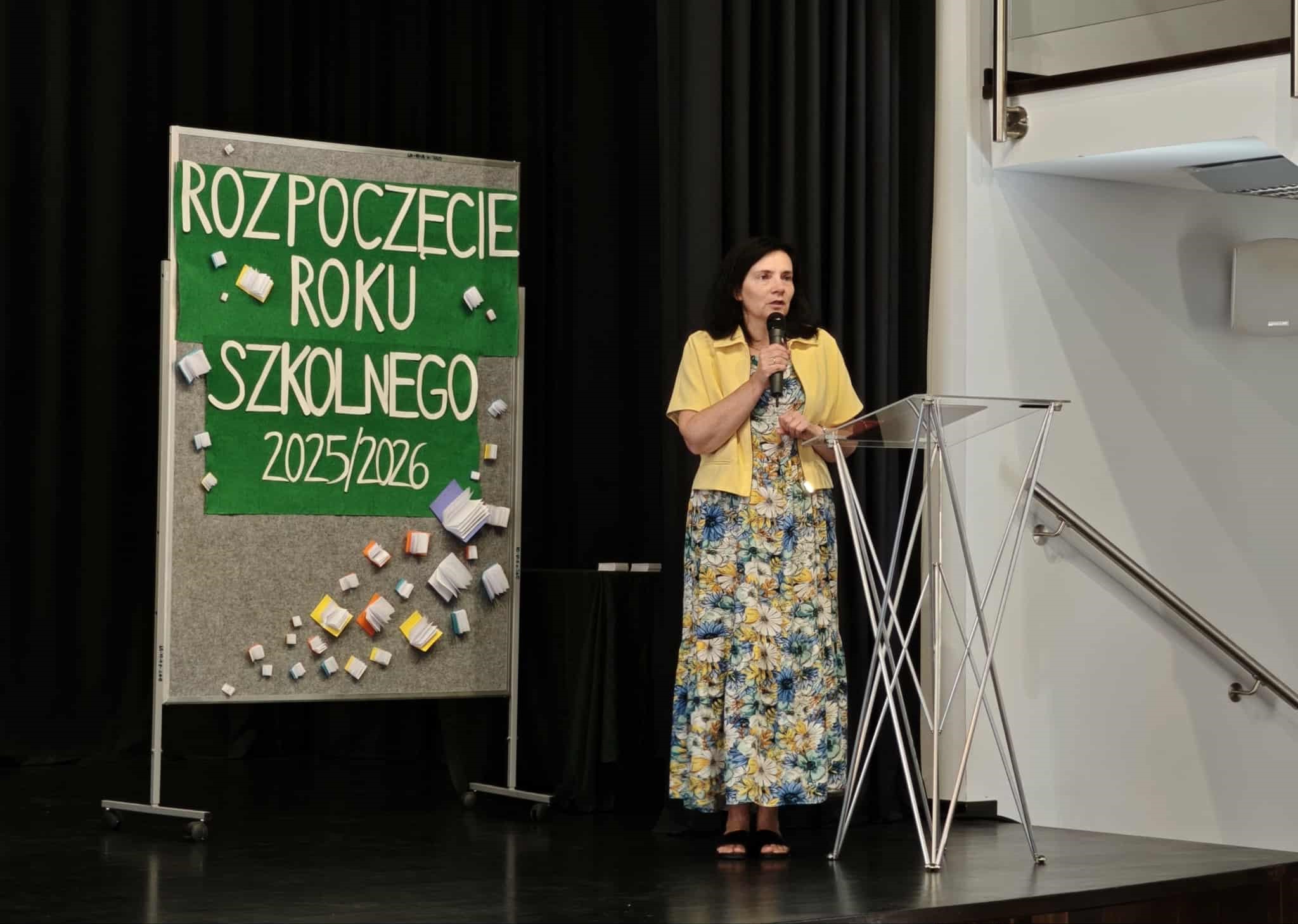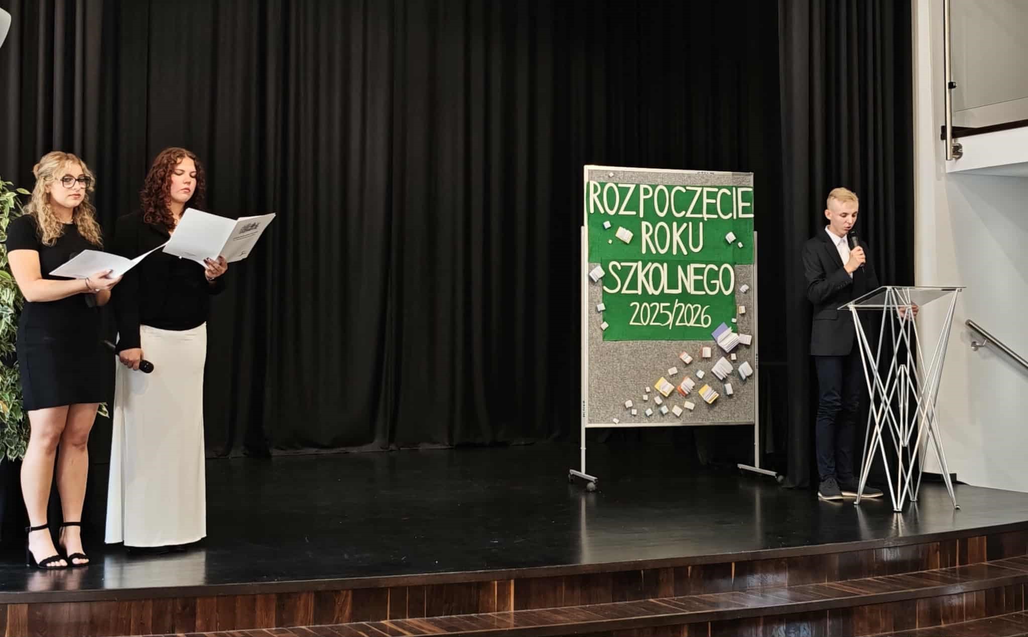 Dziś, 1 września 2025 roku, podczas uroczystej akademii rozpoczęcia roku szkolnego w sali Miejskiej Biblioteki Publicznej, powitaliśmy nowych uczniów naszej szkoły. Pierwszoklasiści złożyli uroczyste ślubowanie, a następnie otrzymali legitymacje szkolne z rąk pani Dyrektor Krystyny Cieślar-Jarząbek, po czym udali się do swoich szkolnych sal. Młodzież starszych klas spotkała się ze swoimi wychowawcami w budynku naszej szkoły. Wszystkim życzymy udanego roku szkolnego, a Dyrekcji i Pracownikom Miejskiej Biblioteki Publicznej serdecznie dziękujemy za udostępnienie pięknej sali głównej. Uroczystość poprowadzili przedstawiciele klasy 3b.
